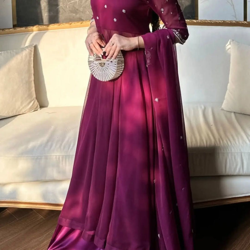 Luxury Hand-Embroidered Chiffon Maxi Set