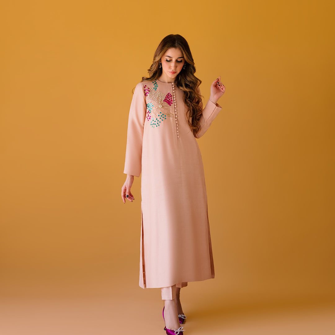 This luxurious dress, named KHUSHI, is made from pure silk for a soft and smooth touch. The high-quality material is perfect for delicate skin and provides a sense of elegance and sophistication. Indulge in the comfort of pure silk with KHUSHI.