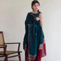 Kaftan silk Straight Kameez paired with Shalwar and organa dual tone dupatta fully embroidered.